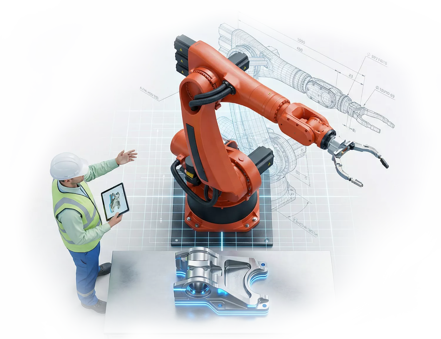 Не просто поставка робота, а полный цикл: проектирование, собственное производство позиционеров, оснастки и запуск оборудования под ключ